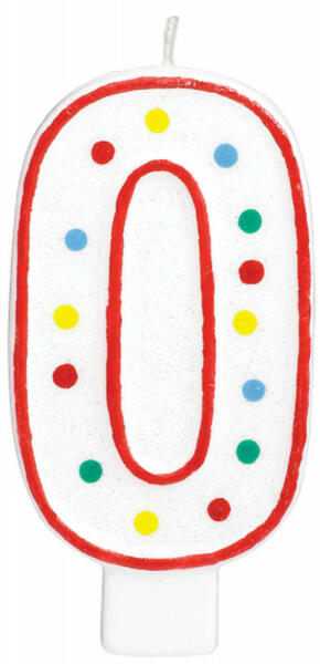 Dots, Pöttyös tortagyertya, számgyertya 0-ás Csillámos! Méret: 13,3 cm