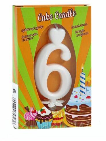 Születésnapi számgyertya 6 fehér 7cm Csomagolt számgyertya 6 fehérBefoglaló méretek 7x2x11 cmAnyaga paraffin