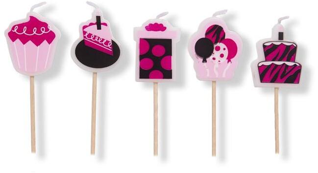 Egyedi tortagyertyával szeretnéd meglepni az ünnepeltet? Ezzel a helyes 5 részes pink fekete sütis tortagyertya készlettel garantáltan megcsillogtatod az ünnepelt szemeit. Ez a figurás gyertya tökéletesen illik tortákra, apró süteményekre és muffinokra is. A figurák mérete: 3,5 cm