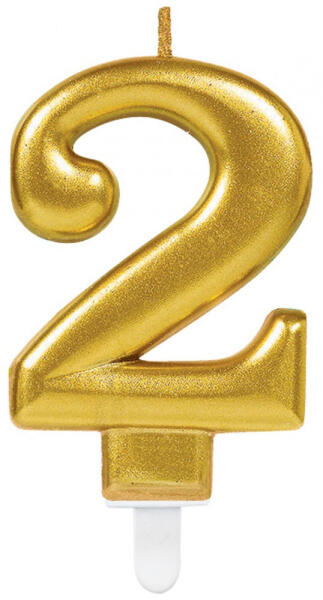 Számgyertya 2-es, Gold tortagyertya Méret: 9,3 cm
