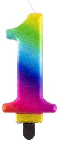 A varázslatos szivárvány színben pompázó, 1-es számot ábrázoló születésnapi gyertya a legszebb kiegészítője lehet a buliknak ha valami különlegességre vágyunk. Mérete: 8 cm.