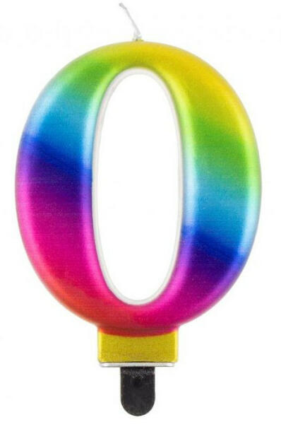 A varázslatos szivárvány színben pompázó, 0 számot ábrázoló születésnapi gyertya a legszebb kiegészítője lehet a buliknak ha valami különlegességre vágyunk. Mérete: 8 cm.