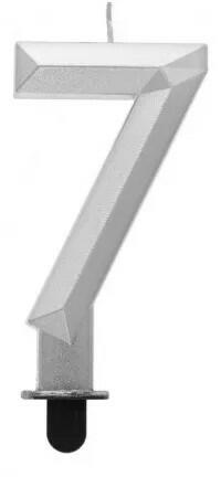 Diamond Silver Metallic, ezüst számgyertya, tortagyertya 7-es Méret: 7,6 cm