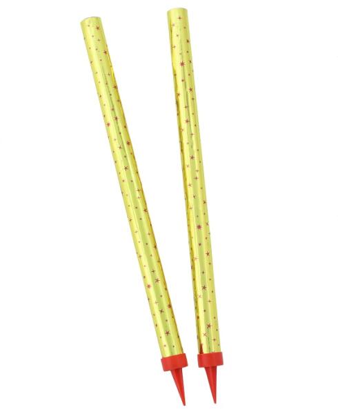 Arany torta tüzijáték - 25 cm / 2 db mennyiség: 2 db méret: 25 cm Díszítse ki a születésnapi tortát torta tűzijátékkal . A torta tűzijátékot beleszúrja a tortába és a meggyújtást követően kis tűzijáték keletkezik. Alkalmasak kis és nagy ünnepelt születésnapi ünnepségére .