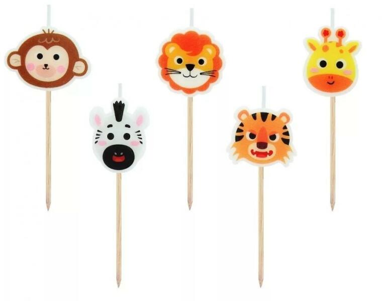 Animals, Állatos tortagyertya, gyertya szett 5 db-os Méret: 3 cm (7 cm pálcával)