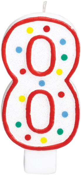 Nagy születésnapi szám gyertya 8 mennyiség: 1 db méret: kb 13 cm szín: fehér pötyökkel Milyen lenne a születésnapi ünnepség gyertyás torta nélkül? Díszítse ki a születésnapi tortát az ünnepelt korának megfelelő szám gyertyával . Ezek a gyertyák biztosan mindenkinek örömet szereznek.