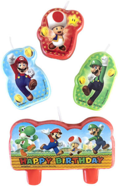 Super Mario tortagyertya, 4 db-os gyertya szett Méret: 4,5 és 6 cm