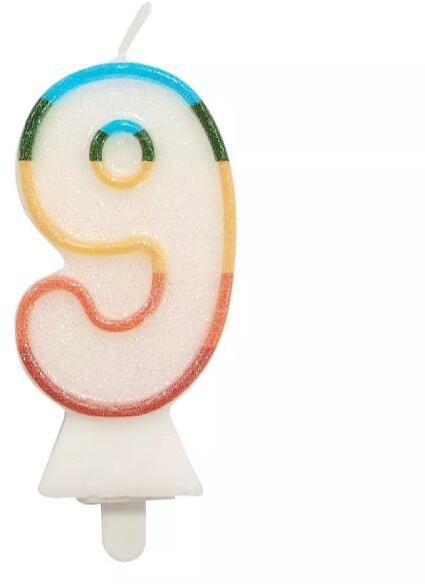 Ezzel a 9-es számgyertyával bárki ünnepivé teheti a születésnapi tortáját. A beszúró tüskének köszönhetően a gyertya egyszerűen és stabilan beleállítható a tortába. Jó választás kicsiknek és nagyoknak egyaránt. Tökéletes tortadísz évfordulókra, céges rendezvényekre és természetesen születésnapokra. Gyertya magassága: 8,5 cm