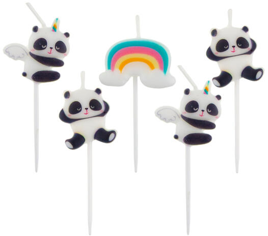 Torta gyertya. Panda maci és szivárvány formákkal, 5 db/cs.