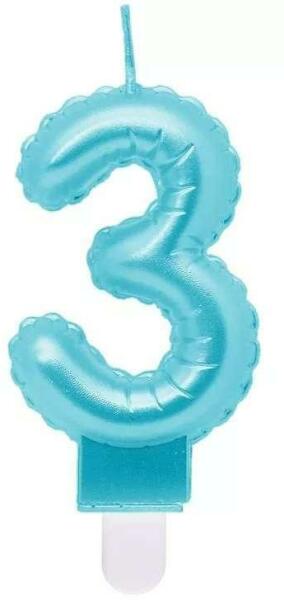 Pearly Light Blue, Kék számgyertya, tortagyertya 3-as Méret: 7 cm