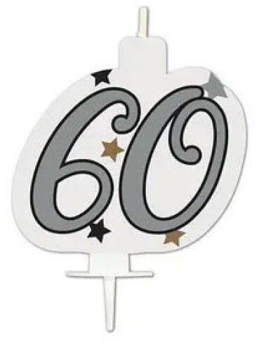 Happy Birthday Silver tortagyertya, számgyertya 60-as Méret: 7 cm
