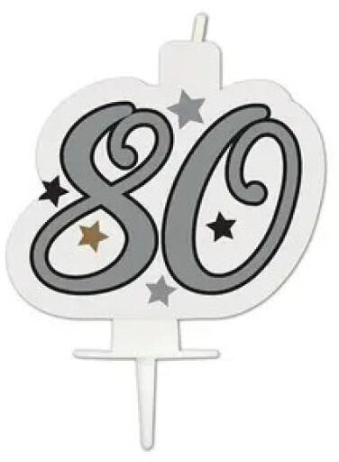 Happy Birthday Silver tortagyertya, számgyertya 80-as Méret: 7 cm