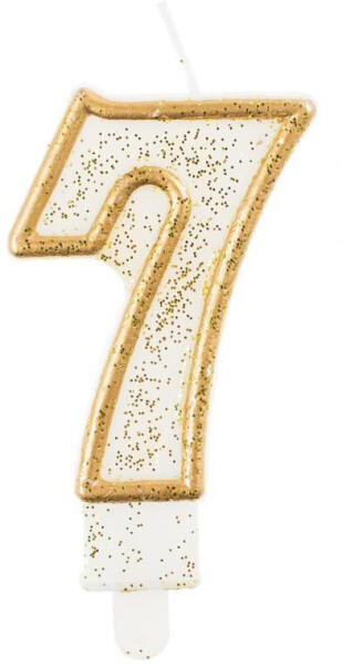 Arany csillámos számgyertya, tortagyertya 7-esMéret: 6,5 cm Arany csillámos számgyertya, tortagyertya 7-esMéret: 6,5 cm