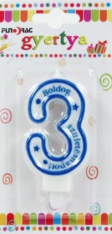 Tortagyertya 3 Boldog Születésnapot 7cm 31413 2féle színben Tortagyertya 3 Boldog Születésnapot 7cm2féle színben választható fiús/lányosBefoglaló méretek 7x1x15 cmAnyaga paraffin