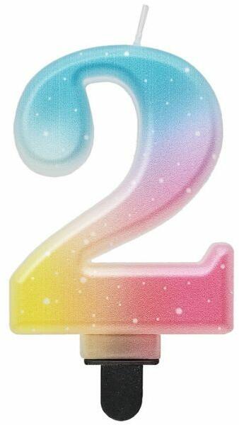 Ezzel a szivárvány színű pasztell árnyalatú 2-es számgyertyával igazán ünnepivé varázsolható bármelyik születésnapi torta. A beszúró tüskének köszönhetően a gyertya egyszerűen és stabilan beleállítható a tortába. Jó választás kicsiknek és nagyoknak egyaránt. Tökéletes tortadísz évfordulókra, céges rendezvényekre és természetesen születésnapokra. A gyert