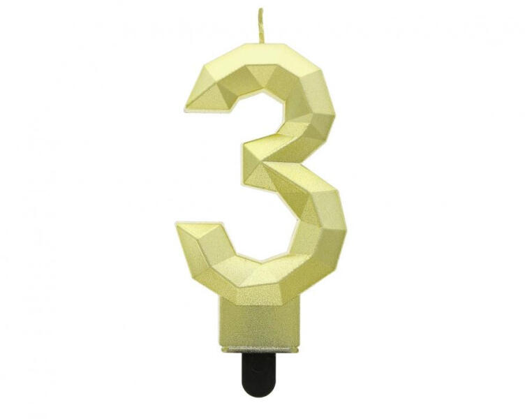 Arany számgyertya, tortagyertya 3-as Méret: 7,6 cm