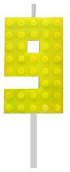 Building Blocks Yellow, Építőkocka tortagyertya, számgyertya 9-es Mérete: 5,5 cm