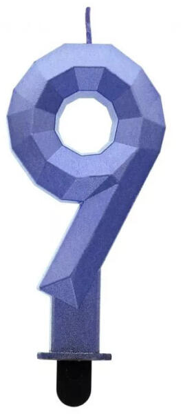Diamond Blue Metallic, kék számgyertya, tortagyertya 9-es Méret: 7,6 cm