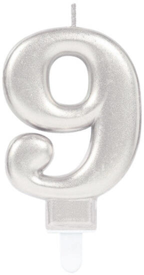 Silver Metallic, Ezüst számgyertya, tortagyertya 9-es Méret: 9,3 cm