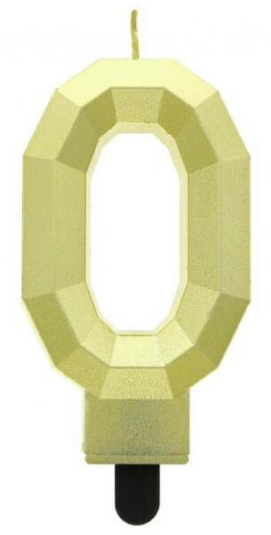 Diamond Gold Metallic, Arany számgyertya, tortagyertya 0-ás Méret: 7,6 cm