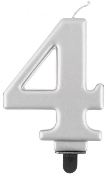 Silver Metallic számgyertya, tortagyertya 4-es Méret: 8 cm