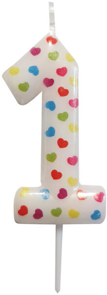 Fehér színű, szívecske mintás számgyertya , mellyel egyszerűen díszítheted az otthon készített vagy boltban vett születésnapi tortát. Tulajdonságok: Anyaga: viasz A gyertya mérete: - Magassága: 90 mm - Szélessége: 30 mm