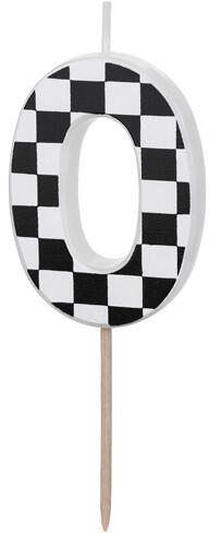 0. számú születésnapi gyertya kockás zászló mintával, mérete kb. 5,5 cm, keverjük össze