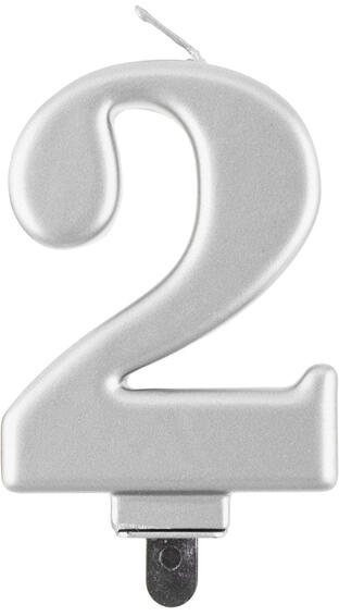 Torta gyertya. 2-es szám. Metál ezüst színben, 8 cm magas.