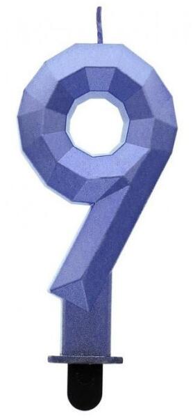 Diamond Blue Metallic, Kék számgyertya, tortagyertya 9-es Méret: 7,6 cm