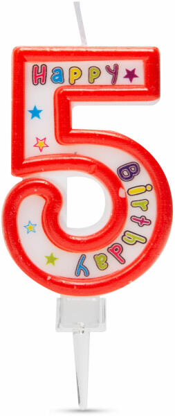 Eladási egység: 1db Szám alakú tortagyertya. Méret: 6,5 x 4 cm Szám: 5