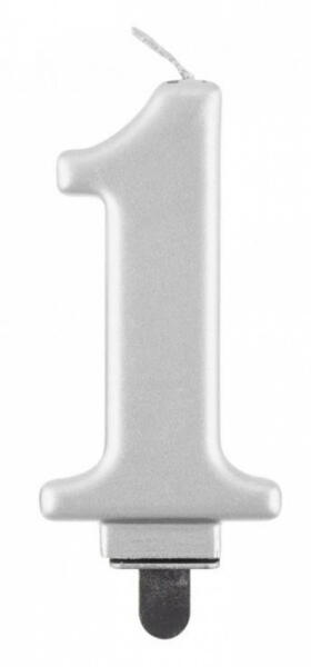 Ezüst számgyertya, tortagyertya 1-es Méret: 8 cm
