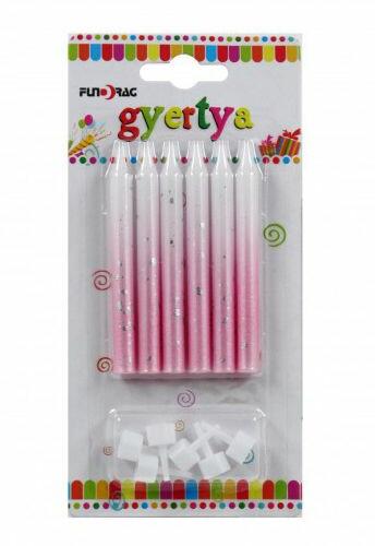Ombre Pink-White, Rózsaszín-Fehér tortagyertya, gyertya szett 5 db-os Méret: 5x5x150mm 5 darab/csomag