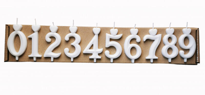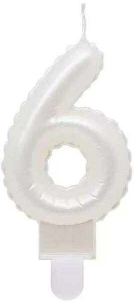 White, fehér számgyertya, tortagyertya 6-os Méret: 7 cm