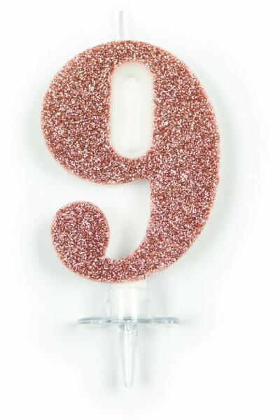 Rosegold színű számos szülinapi gyertya 9 számmal, glitteres-csillogós anyaggal bevonva. A születésnapi tortára az egyik legjobb kellék a rózsaarany szín kedvelőinek. Rosegold színű számos szülinapi gyertya 9 számmal, glitteres-csillogós anyaggal bevonva. A születésnapi tortára az egyik legjobb kellék a rózsaarany szín kedvelőinek. Anyaga: paraffin Mérete: kb 7cm