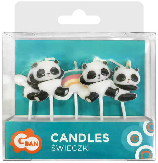 Torta gyertya. Panda maci és szivárvány formákkal, 5 db/cs.
