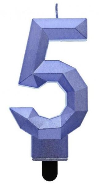 Diamond Blue Metallic, Kék számgyertya, tortagyertya 5-ös Méret: 7,6 cm