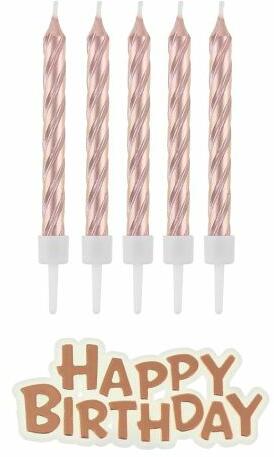 Ezzel a rózsaarany színű gyertya szettel ünnepivé és elegánssá varázsolható bármelyik születésnapi torta, a Happy Birthday felirat pedig még egyértelműbbé teszi az összejövetel célját. A beszúró tüskének köszönhetően a gyertyák egyszerűen és stabilan beleállíthatók a tortába, valamint kellően sokáig égnek ahhoz, hogy a vendégek elénekelhessék az elmaradhata
