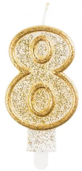 Gold, Arany csillámos számgyertya, tortagyertya 8-as Méret: 6,5 cm