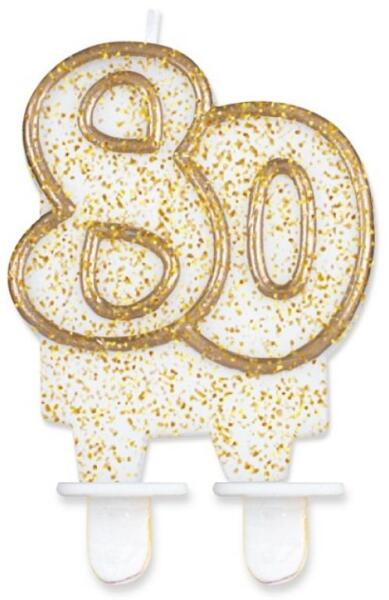 Gold, Arany csillámos tortagyertya, számgyertya 80-as Méret: 8 cm