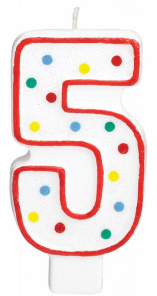 Dots, Pöttyös tortagyertya, számgyertya 5-ös Csillámos! Méret: 13,3 cm