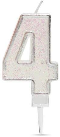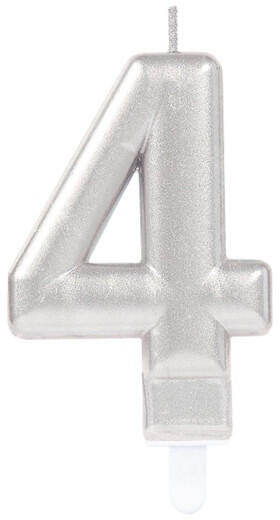 Silver Metallic, Ezüst számgyertya, tortagyertya 4-es Méret: 9,3 cm