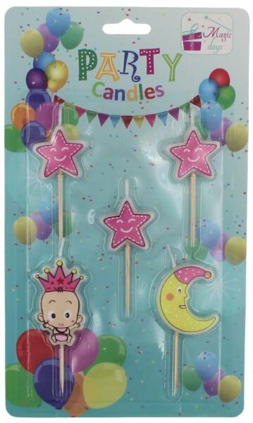 5 darabos gyertya készlet baba rózsaszín hold Az 5 darabos gyertyakészlet baby pink moon a felejthetetlen pillanatokért készült. Könnyen meggyújtható tortán vagy süteményen, hogy teljesüljenek a kívánságok annak, aki elfújja őket. Milyen születésnapi buli lenne torta és gyertyák nélkül? Ha születésnapi partit tervezel, akkor semmiképpen sem hiányozhatnak a tortára val