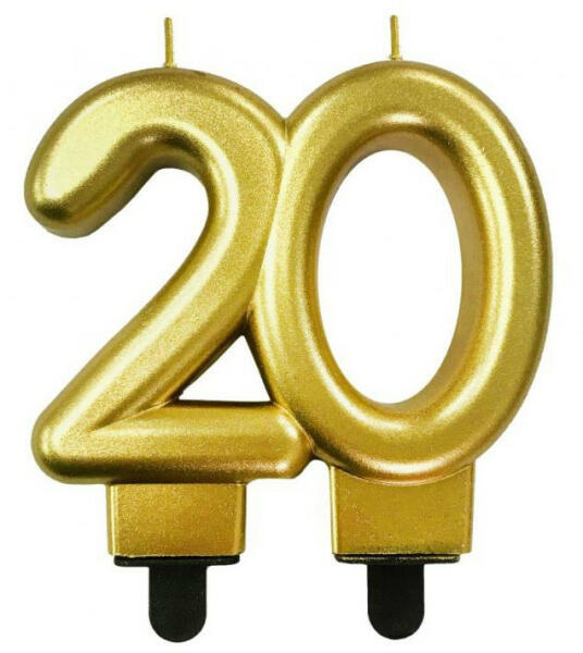 Arany tortagyertya, számgyertya 20-asMéret: 8 cm Arany tortagyertya, számgyertya 20-asMéret: 8 cm