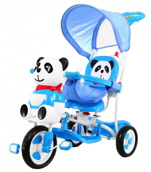 Cikkszám: ZSP. A23-2. NIE Édes kis pandás tricikli a legkisebbek örömére szolgál, mikor már unalmas a babakocsi, nagyobb a gyermek mozgásigénye!A gyermek megpihentetheti a lábát a lábtartón, vagy akár pedálozhat is!A pandás tricikli jellemzői:* A hátsó tolórúd, és a napernyő is állítható* A tricikli keretét egy biztonságos, stabil acélváz adja* Az ülés és a pedál