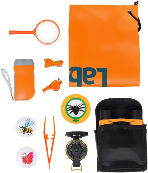 A Levenhuk LabZZ SK20 egy, a fiatal felfedezők és utazók számára tervezett készlet, amellyel gyermeke igazi felderítőnek érezheti magát. A készlet egy átlagos vidéki kirándulást vagy egy parkban tett sétát is lenyűgöző rovartani expedícióvá varázsol. A készlet a terepen való tájékozódáshoz és a vadonban való túléléshez szükséges eszközöket, valamint speciáli