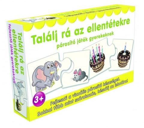 Találj rá az ellentétekre párosító játék Hivatalos magyarországi forgalmazótól. Leírás: Vajon Te megtalálod az összes ellentétpárt ebben a szórakoztató logikai játékban? Kicsi-nagy, gyors-lassú, sok-kevés és még rengeteg ellentétpár, melyek közt válogathatsz. Ez a remek szett 12db puzzle-párt tartalmaz, melyeket logikus gondolkodás útján tudnak a kicsik egyesíteni