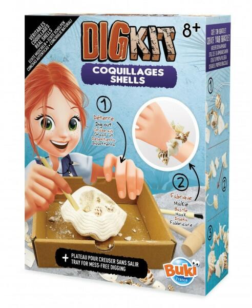 A kis régészek óriási kedvence lesz, ez a különleges Buki Ásatás felfedező készlet , melyben egy kagyló alakú gipsztömbből , többféle valódi kagyló- és csigaház ásható ki. A szettben minden megtalálható, amire egy archeológus növendéknek szüksége van a türelmet igénylő játék során. A gipszet a kis véső és kalapács segítségével kezdjük el feltárni, majd h