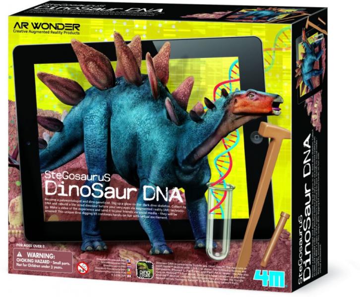 Válj régésszé és dínó DNS-kutatóvá egyszerre! A 4M Stegosaurus DNS készletben egy gipszbe öntött dinoszaurusz csontvázát találod, amit vésővel és kalapáccsal tudsz elővarázsolni. Rakd össze a foszforeszkáló csontokat, majd elemezd a dínó DNS-ét! Ha lefotózod a DNS-t mobileszközöddel, a szobádban is meg tudod jeleníteni a Stegosaurust képernyőn át nézve, sőt mé