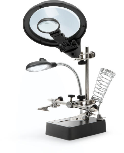 Eladási egység: 1db Rendkívül jól használható forrasztás-technikában, elektronikában, modellezéshez, illetve otthoni barkácsoláshoz. Segítségével az apróbb tárgyak, panelek könnyedén rögzíthetőek ezáltal szabadon hagyva mindkét kezünket. A tartókarok minden pontja 360°-ban mozdítható és rögzíthető. A talp masszív alapot, az erős krokodilcsipeszek pedig stabil ta