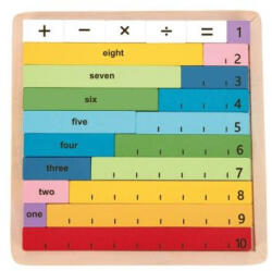 Tooky Toy: Számolni tanulok! fa játékszett különböző színű és hosszúságú színes rudakkal, valamint műveleti jeleket ábrázoló kockákkal. A játék minőségi fából készült, az elemek az alaplapon tárolhatók. Csomagolás mérete: 22 x 22 x 2,3 cm